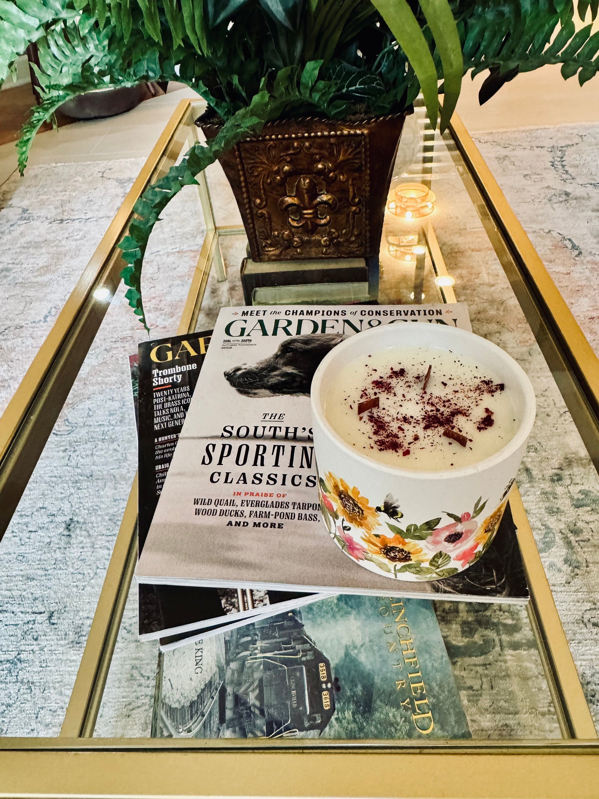 Our ceramic candle planters are designed with home decor in mind. Made of soy and our strong signature fragrance, each candle is hand poured and has three decorative wooden wicks. Each candle is imprinted with Sunflowers and Honey Bees and measures 4.5 inches in diameter and 4 inches in height.